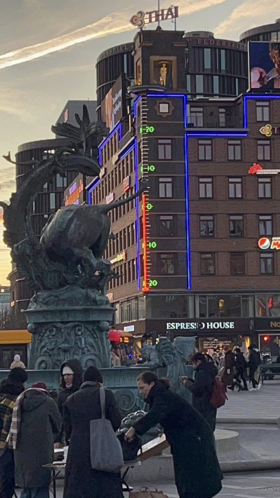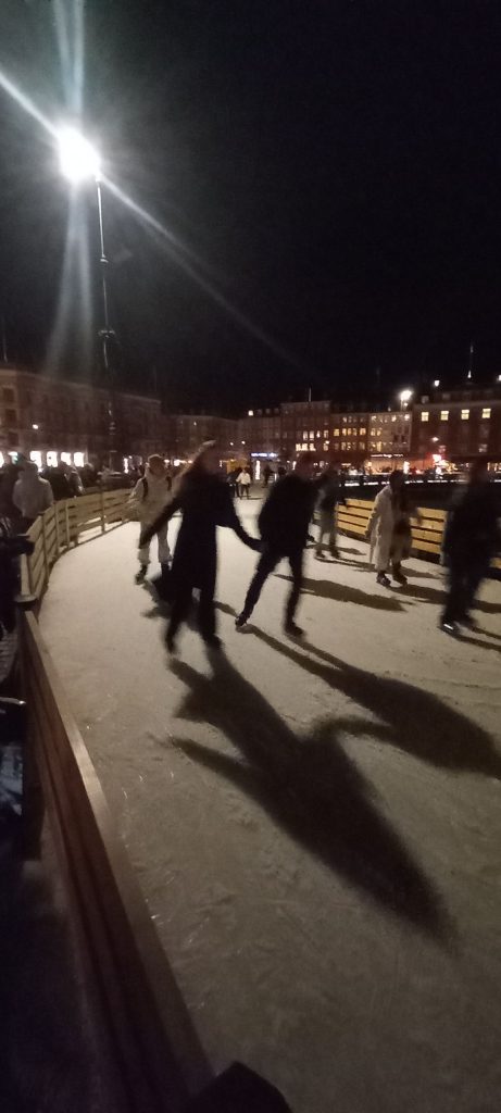 As we stepped out of Kongens Nytorv metro station, we were immediately greeted by the festive charm of the outdoor ice rink set up in the square. The rink was surrounded by twinkling lights, creating a magical winter atmosphere. Skaters glided gracefully across the ice, while the lively square buzzed with locals and tourists alike, all enjoying the holiday spirit. It was the perfect spot to pause, take in the sights, and soak up Copenhagen’s winter magic.