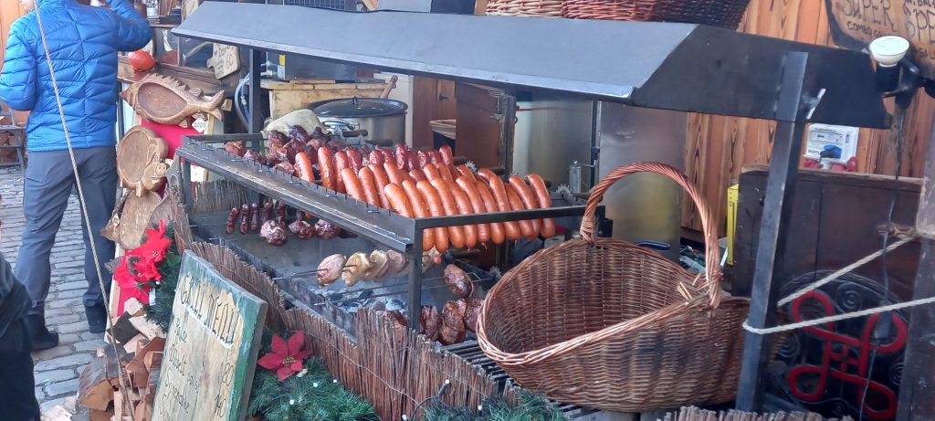 By 11:50 CET, we had arrived at the Højbro Plads Christmas Market, one of Copenhagen’s most popular holiday destinations. The market was full of delightful stalls offering everything from unique gifts to delicious seasonal foods. We couldn’t resist indulging in a few festive treats, starting with a warm cup of gløgg (a traditional Danish mulled wine) for 85 DKK—the perfect way to warm up in the chilly air.