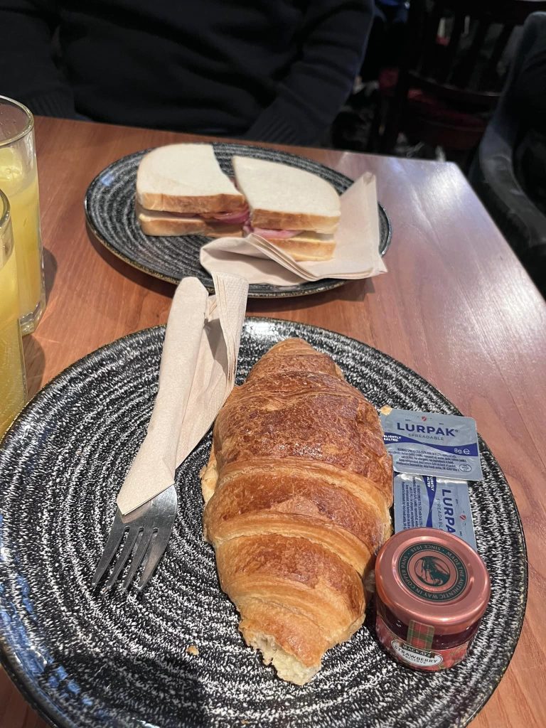 Once we made it through security, it was time for breakfast. We stopped by Wetherspoons for a hearty meal to fuel up for the day ahead. We treated ourselves to a croissant, bacon butty, and two orange juices—a perfect start to the morning. Total Breakfast Cost: £16.84.