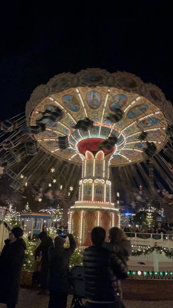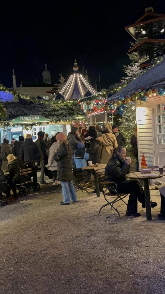At 17:15 CET, we made our way to Tivoli Gardens, one of Copenhagen’s most iconic attractions. After a brief queue to get in, we entered the magical world of Tivoli, which was even more enchanting under the glow of thousands of twinkling lights. The entire park was beautifully decorated for the holiday season, with festive displays, sparkling trees, and a sense of wonder in the air. We had pre-booked our tickets online, which cost 400 DKK for both of us, ensuring a smooth entry into this winter wonderland.